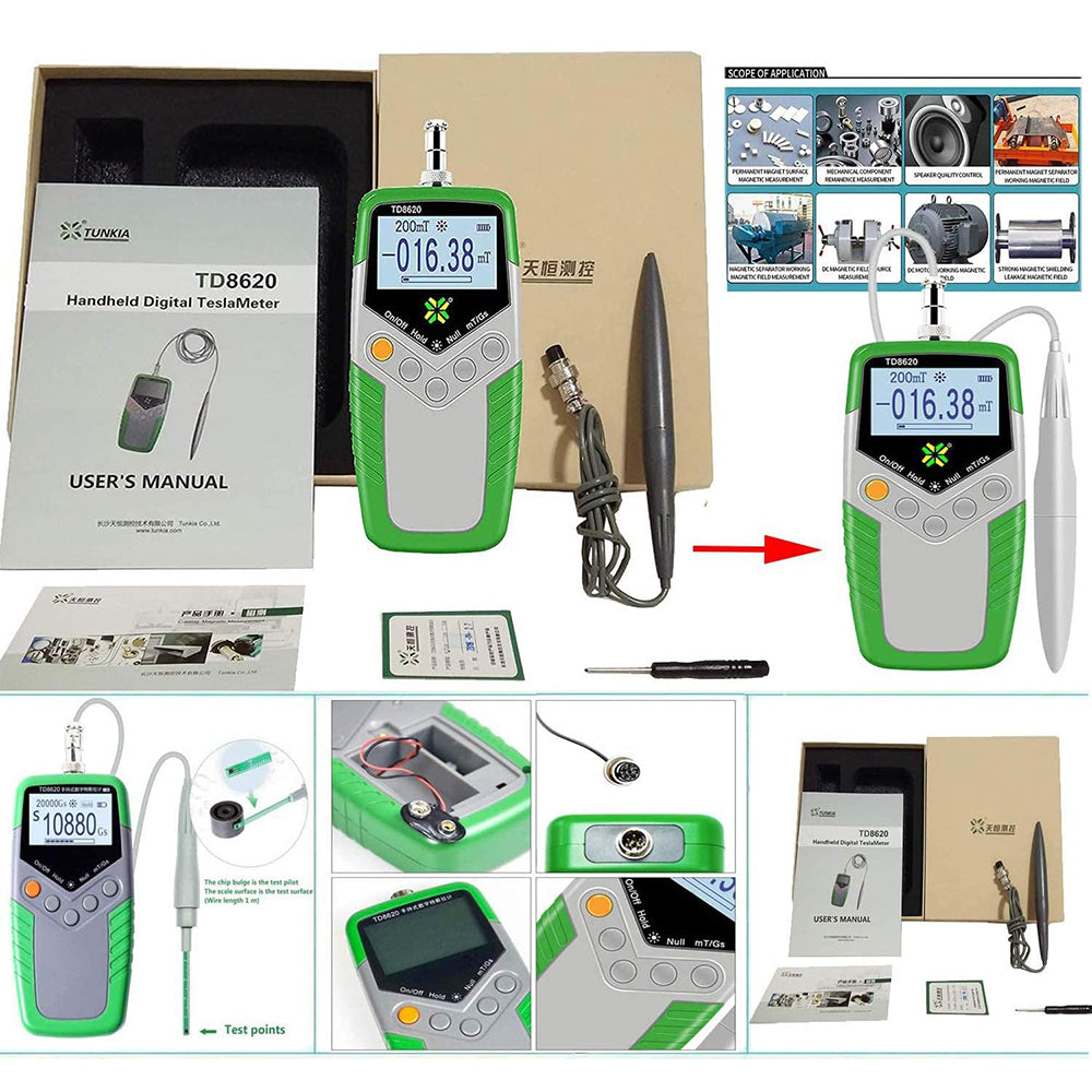 QIUSUO Handheld Gauss Meter High Precision Gaussmeter with 2% Accuracy Ultra Large Range 0 to 2400mT 0 to 24000Gs Resolution 0.01mT 0.1Gs