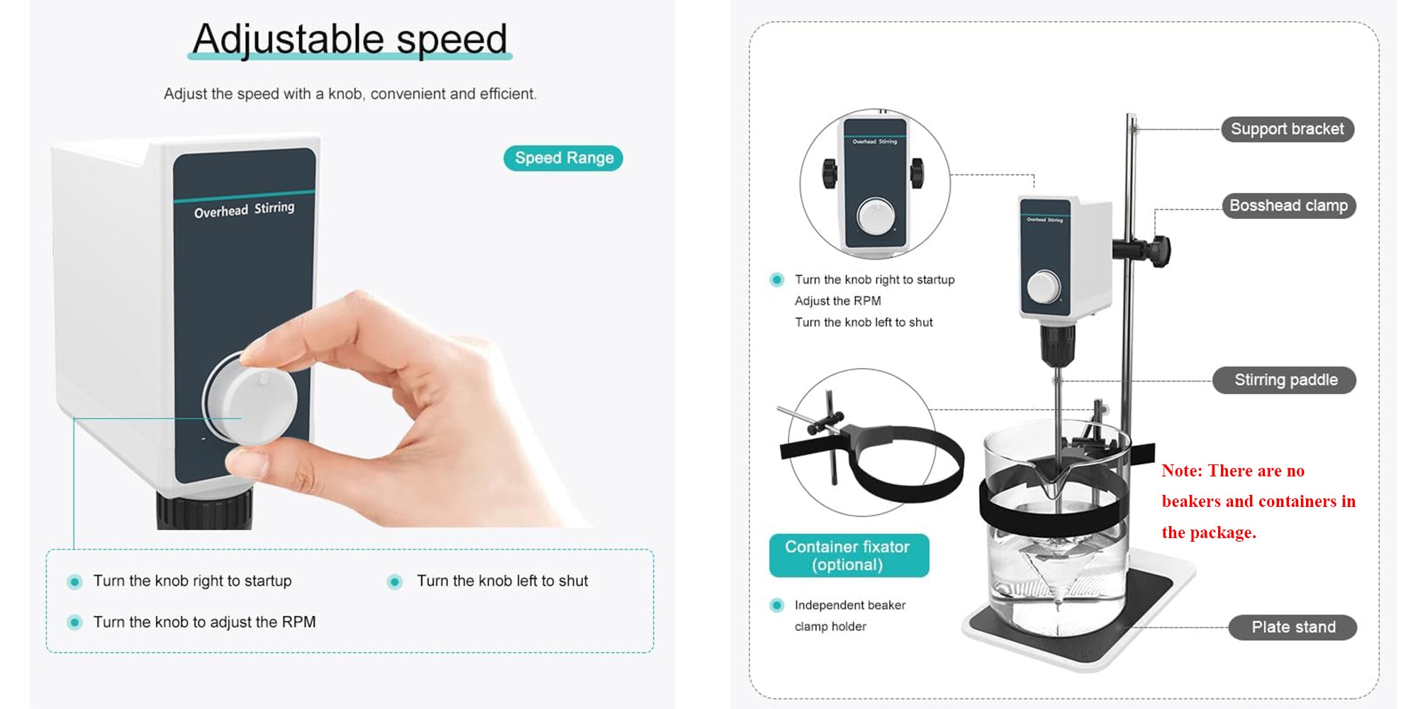 The rotating speed is adjustable, and the rotating speed range is 200-1500rpm.
