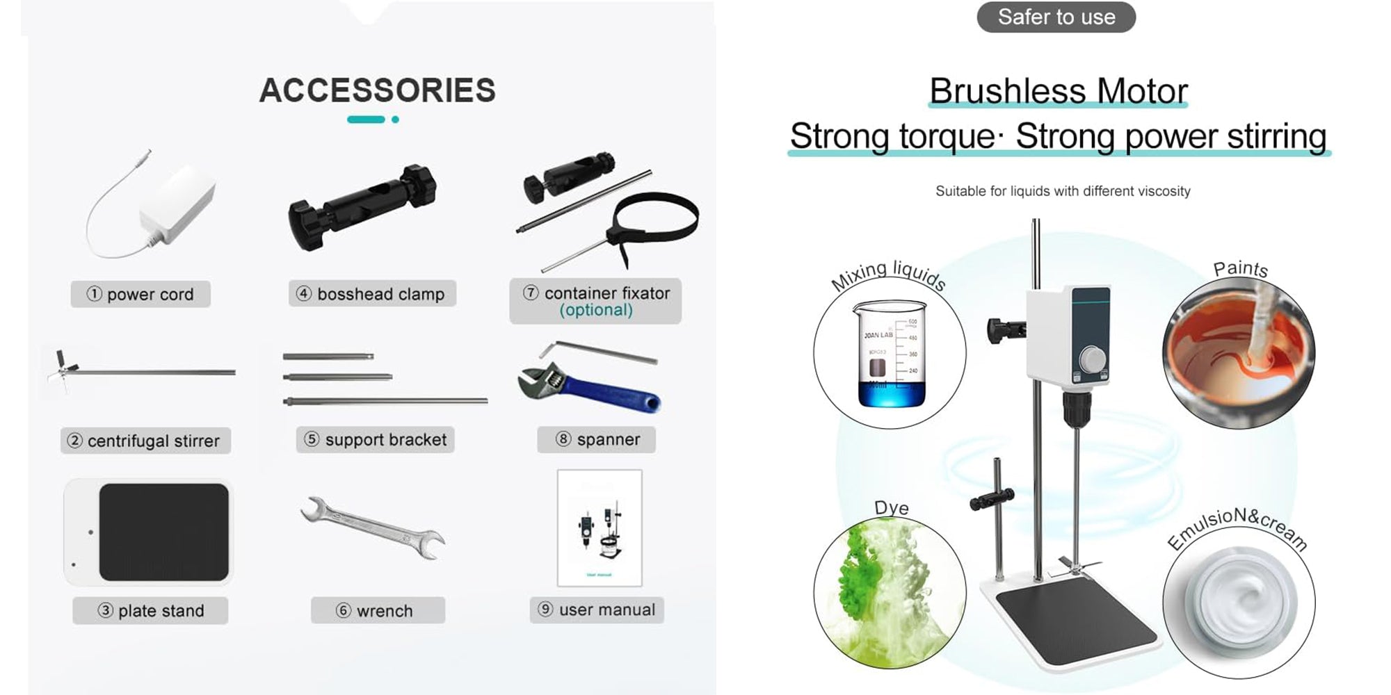 QIUSUO Laboratory Overhead Stirrer Electric Overhead Stirrer with Max Amount of Stirring(H2O) 5L Max Viscosity 5000mPas Clamping Diameter Range of Drill Chuck 1 - 10 mm Brush Motor Power 20W