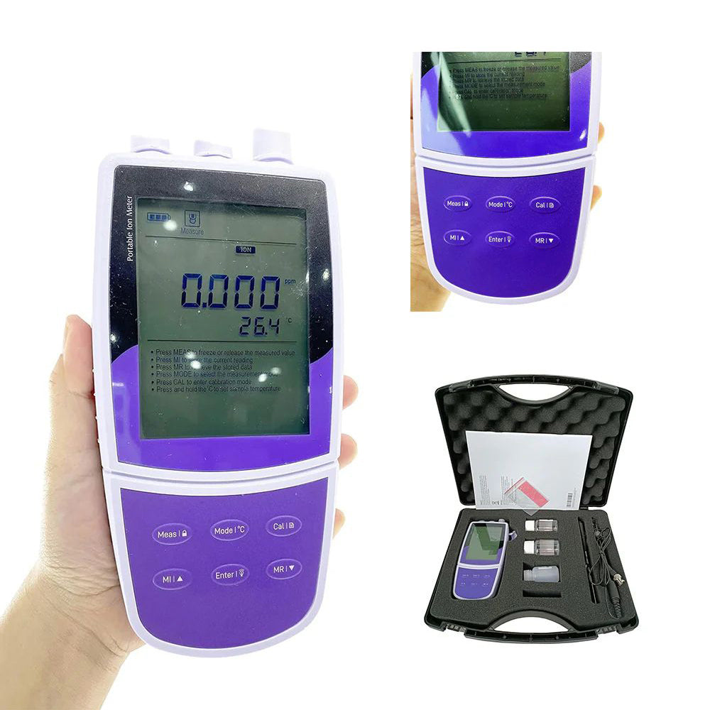 Professional portable lead ion meter is equipped with a backlit LCD display.