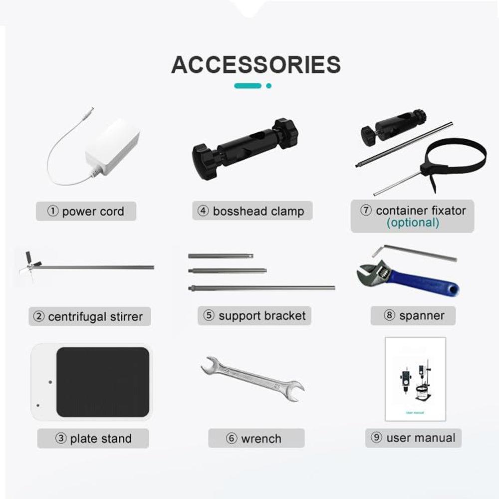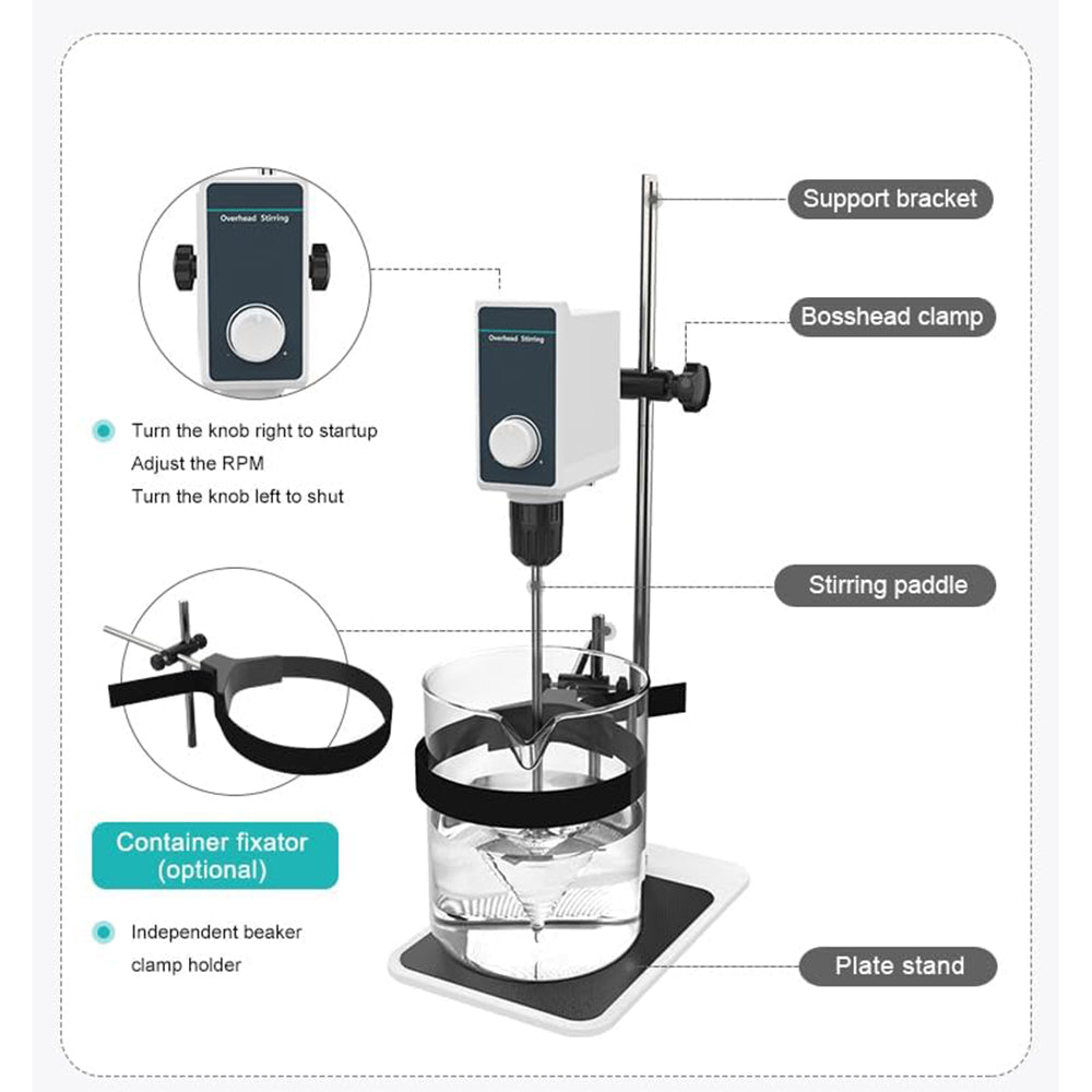QIUSUO Overhead Mixer Overhead Mixer with Max Amount of Stirring(H2O) 5L Max Torque 10N.cm Clamping Diameter Range of Drill Chuck 1 - 10 mm Brush Motor Power 20W RPM 200-1500rpm Max Torque 10N.cm