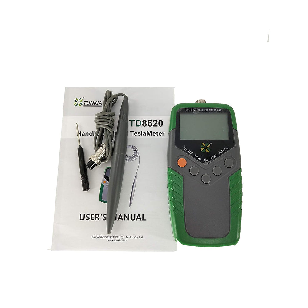 The design of TD8620 hand-held digital Tesla meter follows the IEC-61010-1 safety standard, and conforms to the national verification regulation of JJG242-1995 Tesla meter. TD8620 hand-held digital Tesla meter adopts not only the high-sensitivity Hall sensor and high-resolution A / D conversion chip, but also the popular single-chip computer technology and digital filtering technology . It has the advantages of high sensitivity, stable reading, low power consumption , and light weight. The measurement range is 0-2000 Mt, and the basic accuracy is ±1%. It has the characteristics of automatic zero, automatic measurement range, keeping of maximum / minimum values, etc.